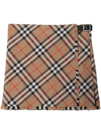 checkered wool-blend skirt Highlights - Light brown - Side buckle fastening - Nova check print - Frayed detailing - Thigh-length Made in United Kingdom Composition Calf Leather 100%, Polyester 53%, Wool 47% Washing instructions Dry Clean Only