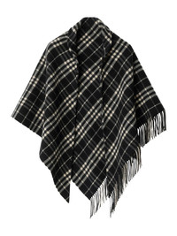 checked scarf Highlights - Black - Cape design - Fringed edge Made in United Kingdom Composition Wool 90%, Cashmere 10% SIZE & FIT Measurement LENGTH 75.98 in(193 cm) WIDTH 37.79 in(96 cm)