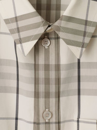 checked shirt Highlights - Light beige - Front button fastening - Front tie fastening - Classic collar - Short sleeves Imported Composition Cotton 100%, Mother of Pearl 100%