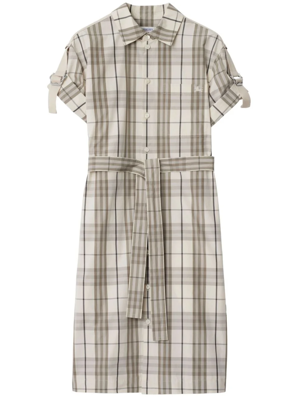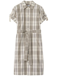 checked shirt dress Highlights - White - Front button fastening - Short sleeves - Embroidered logo at the chest - Detachable and adjustable waist belt Imported Composition Lining: Cotton 100% Outer: Cotton 100%, Mother of Pearl 100%