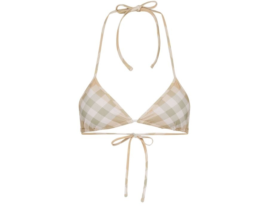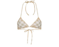 DESCRIPTION - bikini tops - v-neck - checked pattern DETAILS AND CARE MATERIAL: Outer : 74% polyamide, 26% elastan, Lining : 61% polyamide, 39% elastan COLOR: flax_ip_check COUNTRY OF MANUFACTURE: Portugal PRODUCT CODE: BUR88XY7BEIDZAAA00