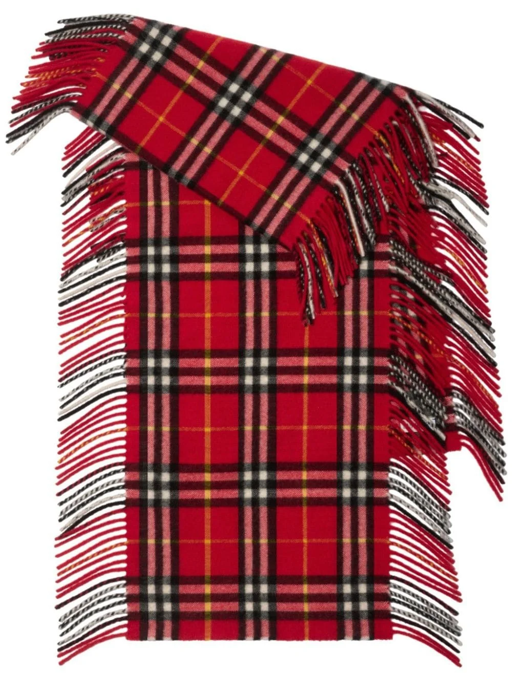 checkered Happy scarf Highlights - Bright red/multicolour - Cashmere - Brushed effect - Check pattern - Self-tie fastening - Fringed edge Made in United Kingdom Composition Cashmere 100% SIZE & FIT Measurement LENGTH 61.02 in(155 cm) WIDTH 11.81 in(30 cm) Washing instructions Dry Clean Only