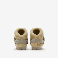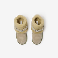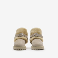 Product Details Italian-made boots in calf suede with a shearling collar and lining. The slip-on style features B buckle straps and chunky rubber soles moulded with our Equestrian Knight Design. - Rounded toe - Shearling lining - Equestrian Knight Design at sole - Comes with a dust bag - Item 80953521 Fabric & Care - Upper: 50% sheep leather, 40% calf suede, 6% cotton, 4% viscose - Trim: 80% zinc alloy, 20% copper - Lining: 100% sheep leather - Sole: 100% thermoplastic polyurethane - Made in Italy