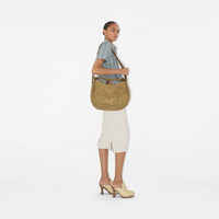 Product Details Debuted on the Burberry Summer 2025 runway, a softly structured messenger bag made in Italy from calf suede in a patchwork check. The curved style is unlined and takes its name from the logo-engraved ‘b’ dog clip at the front pocket, with brushed metal hardware and a hand-stitched top handle inspired by equestrian saddles. The adjustable webbing strap has leather trims subtly embossed with our Equestrian Knight Design. - Leather top handle - Adjustable webbing strap - Zip closure - Exterior pocket with ‘b’ clip closure, interior slip pocket - Hand-painted edges - Brushed metal hardware - Embossed Equestrian Knight Design at strap - Unlined - Comes with a dust bag - Item 81077101 Size & Fit - 38 x 14 x 29.5cm/15 x 5.5 x 11.6in. Min. strap drop: 35cm/13.8in. Max. strap drop: 60cm/23.6in Fabric & Care - 100% calf suede - Trim: 100% calf suede - Made in Italy