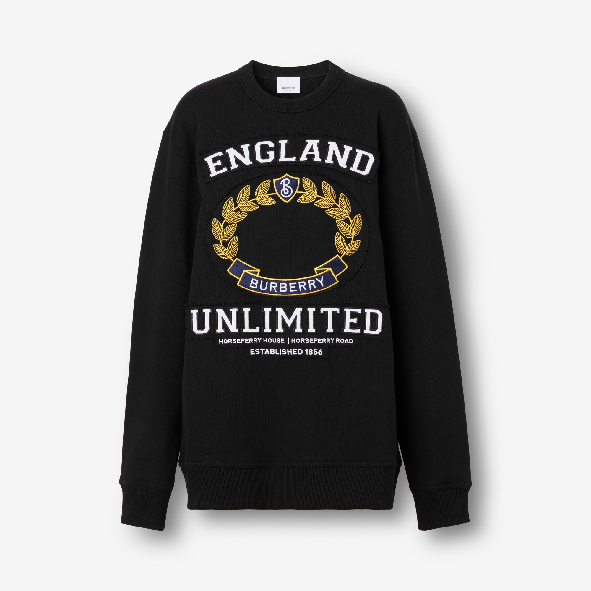 PRODUCT DETAILS An oversized sweatshirt in loop-back cotton, reimagined with collegiate-inspired appliqués and the oak leaf crest and logo – a reconstructed version of our archive emblem. - Sweatshirt length: 73.5cm/28.9in. This is based on a size UK S as proportions change slightly according to size. - Model’s height: 180cm/5ft 11in. Model wears size UK S. Oversized fit 100% cotton Trims: 98% cotton, 2% elastane; 100% cotton; 100% viscose Machine wash Imported Item 80650611