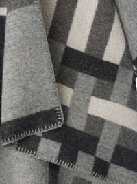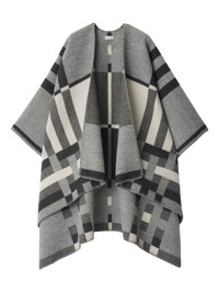 colour-block checked cape Highlights - Grey - Geometric check design - Contrast stitching - Open front Made in United Kingdom Composition Calf Leather 100%, Wool 100%, Zinc 75%, Brass 25%