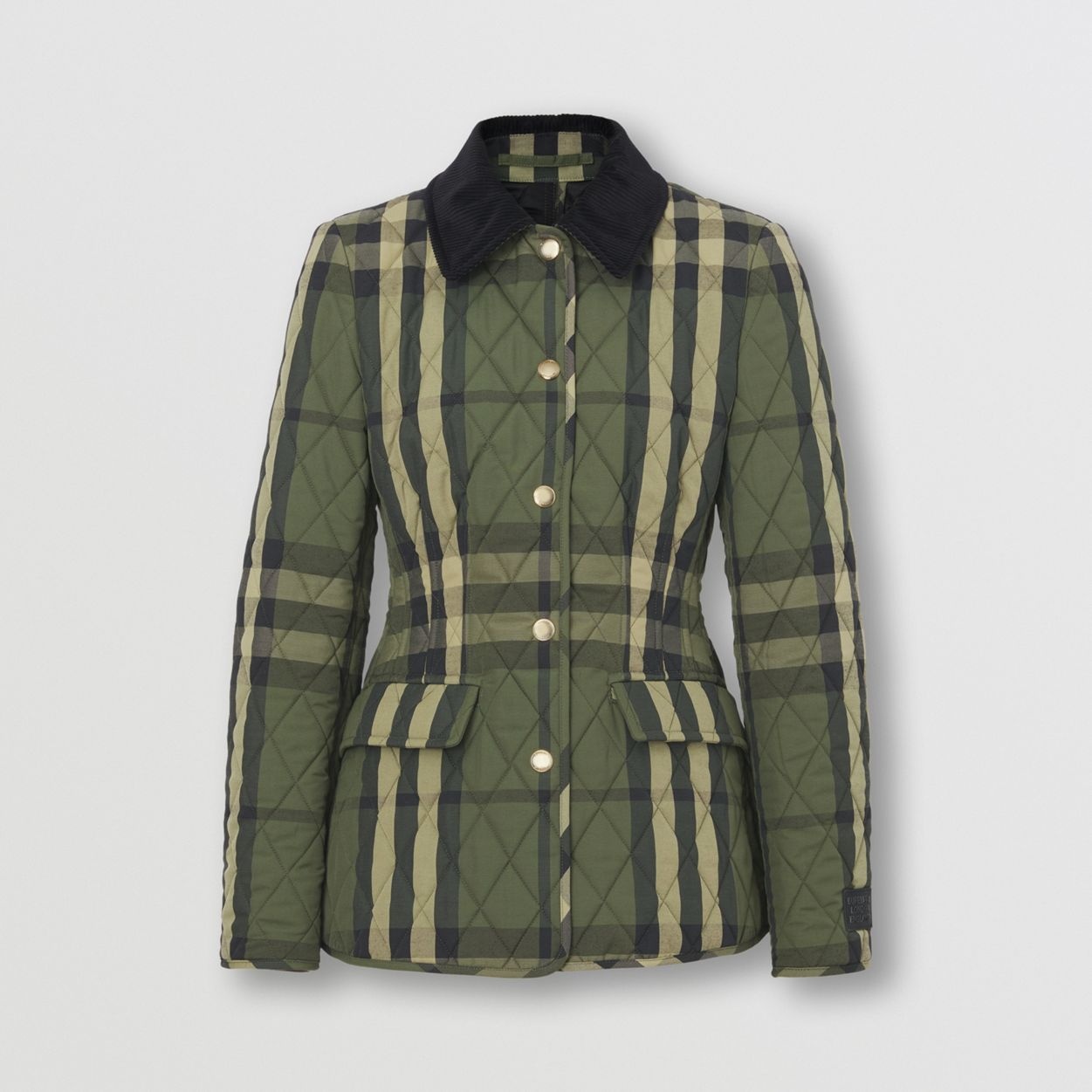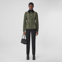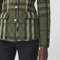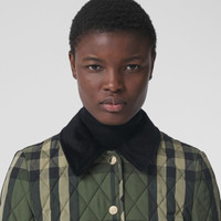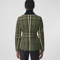 PRODUCT DETAILS A diamond-quilted barn jacket in wool-blend flannel, darted to enhance the waisted silhouette – inspired by Victorian corsetry. Enlivened with a seasonal check, the design is finished with a corduroy collar and logo appliqué. This style fits small to size. For a regular fit, please take a size larger than normal. Jacket length: 65cm/25.6in. This is based on a size UK 8 as proportions change slightly according to size. Model’s height: 180cm/5ft 11in. Model wears size UK 6. Outer: 64% polyester, 36% wool Lining: 60% cupro, 40% cotton Filling: 100% polyester Press-stud closure Flap pockets Silicone patch with raised Burberry lettering at sleeve Specialist dry clean Imported 80414991