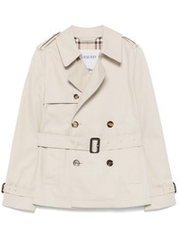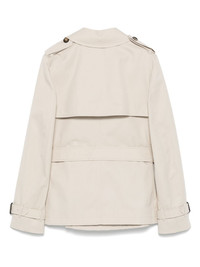 double-breasted trench jacket Highlights - Archive beige - Double-breasted button fastening - Two side slit pockets - Detachable waist belt - Belted cuffs Made in United Kingdom Composition Outer: Recycled Polyester 50%, Cotton 35%, Polyester 15% Lining: Cupro 100% Washing instructions Dry Clean Only