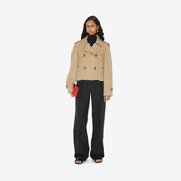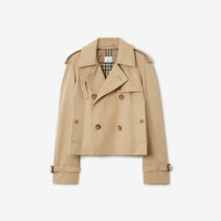 Product Details A cropped jacket inspired by our iconic trench and made in England from shower-resistant gabardine. Inside is Burberry Check cotton, used to line our coats since the 1920s. The design is cut to a regular fit. - Double-breasted button closure - Throat latch - Epaulettes - Button welt pockets - Belted cuffs - Burberry Check lining and undercollar - Relaxed fit: a looser cut than our regular fit. Consider taking a size down. - Item 80710041 Size & Fit - Coat length: 54cm/21.3in (size UK 6) - Model’s height: 177cm/5ft 10in. Model wears size UK 6 Fabric & Care - Outer: 100% cotton - Lining: 100% cotton - Sleeve lining: 100% viscose - Buckles: 100% calf leather - Specialist dry clean - Made in Yorkshire, England