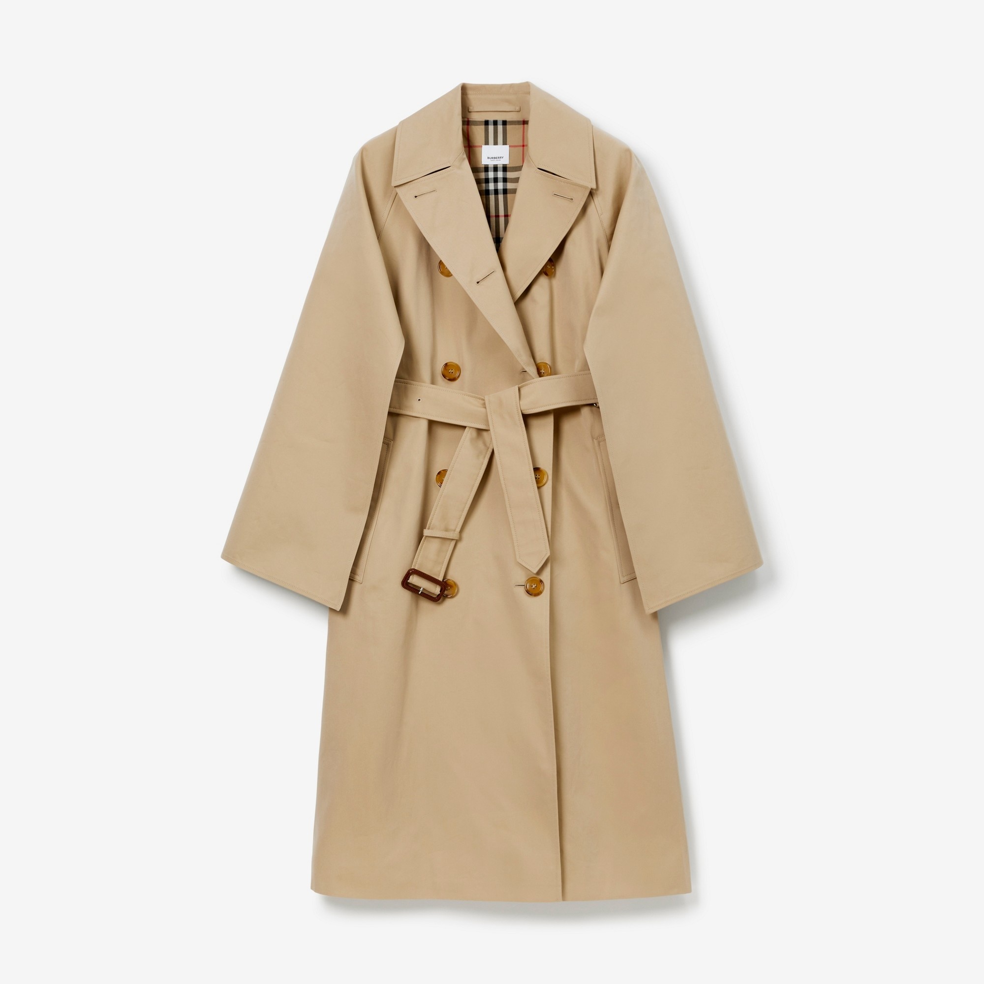 PRODUCT DETAILS Crafted from bespoke gabardine woven at the Burberry Mill in Yorkshire, the trench is reworked with cape sleeves lined in Burberry Check. - Length: 115cm/45.3in. This is based on a size UK 6. - Model’s height: 177cm/5ft 10in. Model wears size UK 6. Relaxed fit. This style is cut to a loose silhouette. Outer (bespoke gabardine): 100% cotton Undercollar: 100% cotton Lining (Burberry Check): 100% cotton Sleeve lining: 100% cupro Pocket lining: 65% polyester, 35% cotton Buckles: calf leather Double-breasted closure Button-through welt pockets Signature details: belted cuffs, D-ring belt Dry clean with any solvent except perchloroethylene Imported Item 80735411
