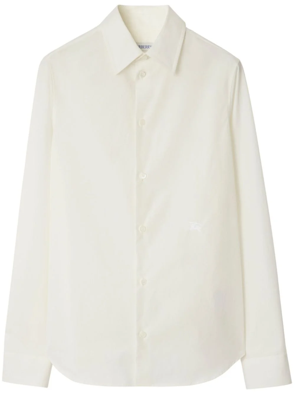 cotton shirt Highlights - White - Cotton - Poplin texture - Mother-of-pearl button fastening - Spread collar - Long sleeves - Buttoned cuffs - Signature equestrian knight motif - Curved hem Imported Composition Cotton 100%