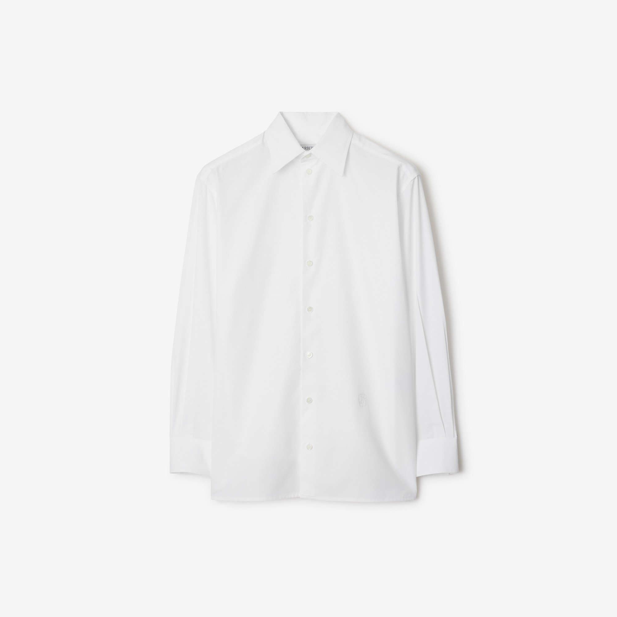 Product Details A long-sleeved shirt made from Italian-woven cotton poplin. The style is cut to a relaxed fit and embroidered with a B charm motif. - Button closure - Point collar - Chest patch pocket - Single-button cuffs - Curved hem - Relaxed fit: a looser cut than our regular fit. Consider taking a size down. - Machine wash - Item 80995671 Size & Fit - Length: 75cm/29.5in (size UK 8) - Model’s height: 176cm/5ft 9in. Model wears size UK 8 Fabric & Care - 100% cotton - Buttons: mother-of-pearl - Imported