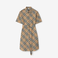 Product Details A shirt dress made from cotton poplin woven in Italy with the Burberry Check. The short-sleeved style is tailored to a regular fit, with a B buckle belt to adjust the silhouette and epaulettes inspired by the signature Burberry trench. - Button closure - Point collar - Side slip pockets - Curved hem - Embroidered Equestrian Knight Design at chest - Regular fit. Fits true to size, take your normal size. - Item 81117011 Size & Fit - Length: 96cm/37.8in (size UK 8) Fabric & Care - 100% cotton - Buttons: buffalo horn - Specialist dry clean - Imported