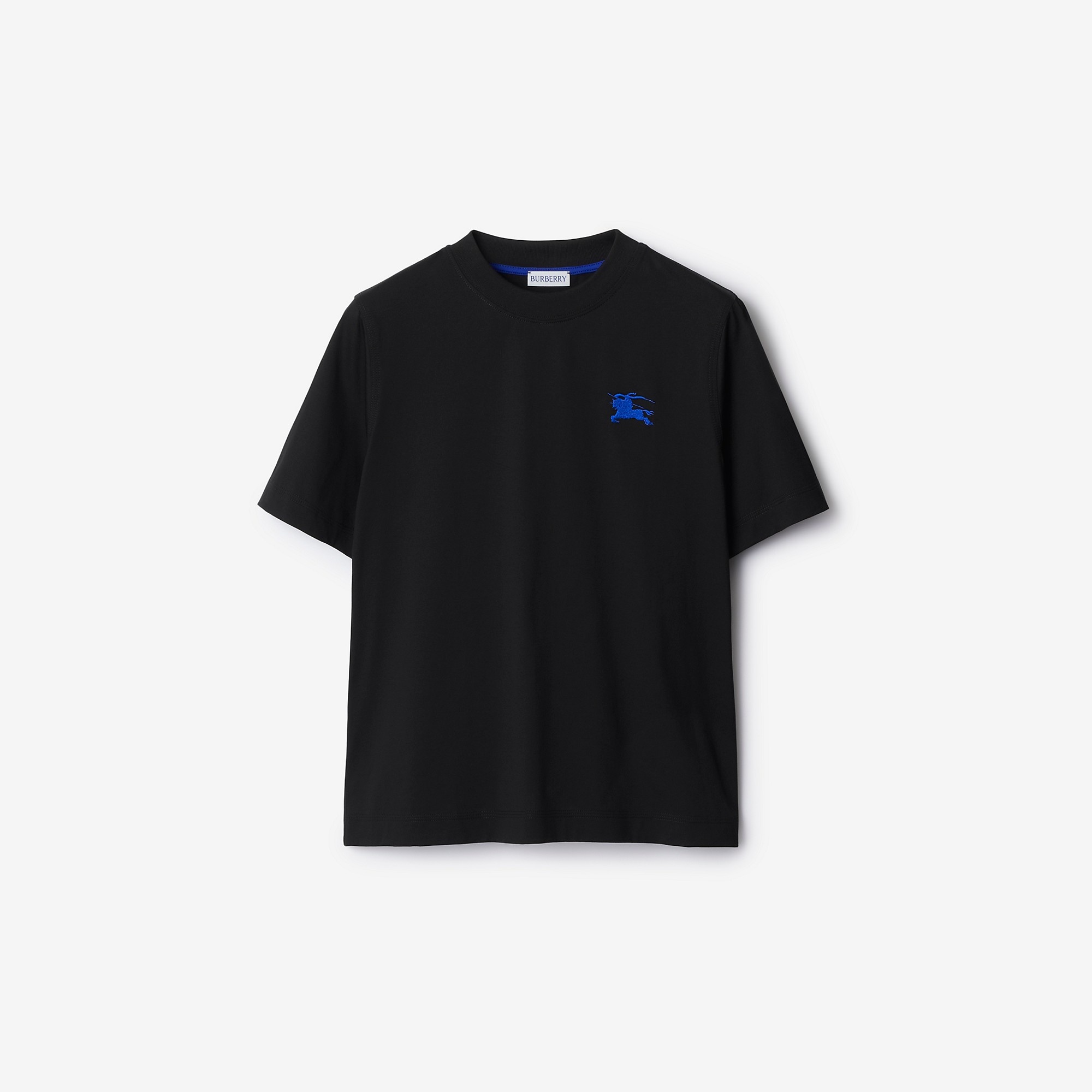 Product Details A T-shirt in lightweight cotton jersey, embroidered with the Equestrian Knight Design. The style is cut to a regular fit. Part of Burberry Classics, wardrobe foundations with a unique Burberry slant. - Rib-knit neckline - Embroidered Equestrian Knight Design at chest - Regular fit. Fits true to size, take your normal size. - Machine wash - Item 80849731 Size & Fit - Length: 61cm/24in (size UK S) - Model’s height: 180cm/5ft 11in. Model wears size UK S Fabric & Care - 100% cotton* - Trim: 100% cotton - *100% of the cotton in the main material is organic - Made in Portugal