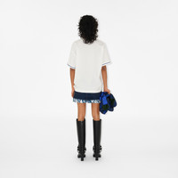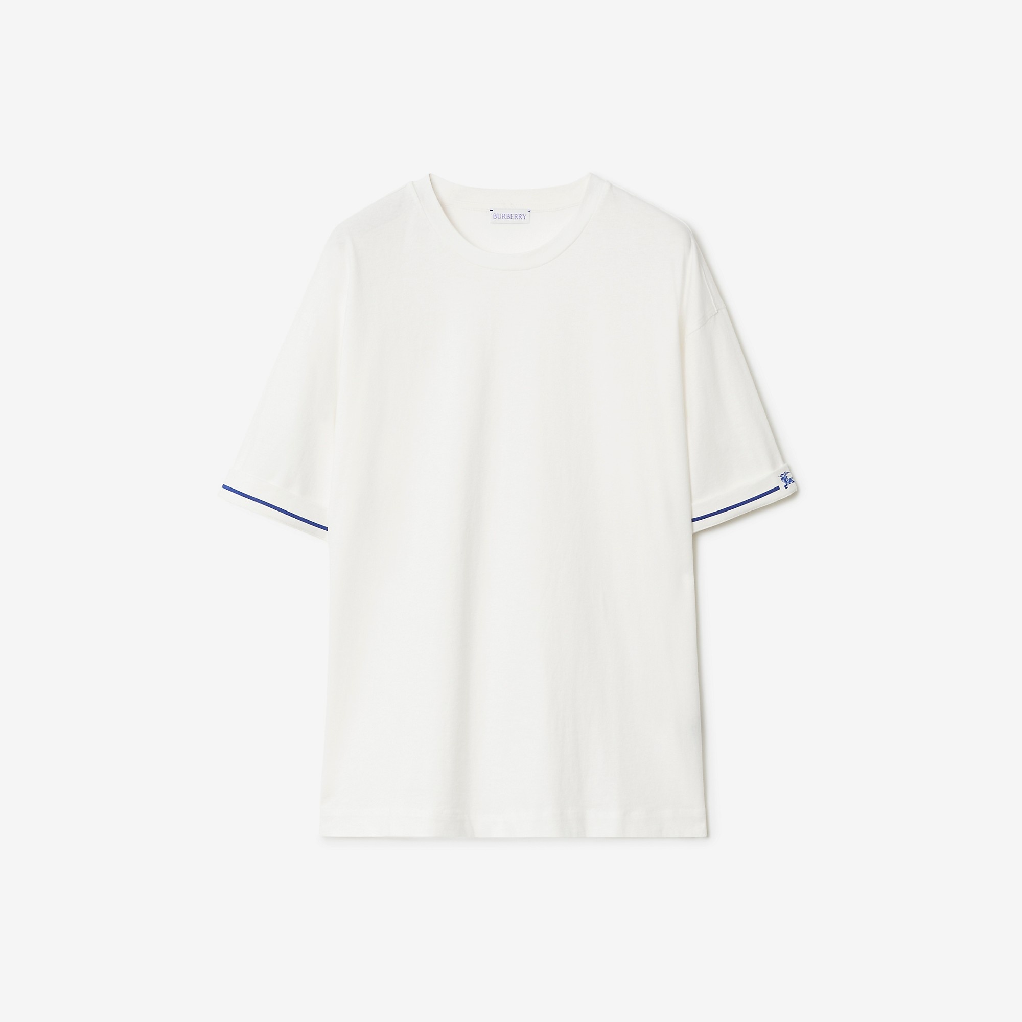 Product Details A cotton jersey T-shirt with stripes and the Equestrian Knight Design printed across the cuffs. The style is cut to an oversized fit. - Crew neck - Oversized fit: our loosest cut, designed for exaggerated proportions. We recommend sizing down. - Machine wash - *Containing organic cotton - Item 80847831 Size & Fit - Length: 67.5cm/26.6in (size UK S) - Model’s height: 175cm/5ft 9in. Model wears size UK S Fabric & Care - 100% cotton* - Made in Portugal