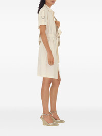 EKD-embroidered shirt dress Highlights - White - Front button fastening - Chest patch pocket - Belted waist - Two side slit pockets Imported Composition Silk 80%, Nylon 20%