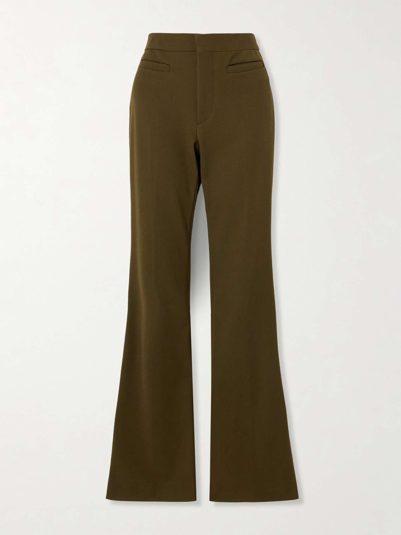 Burberry's pants are cut from twill and have a cool flared shape that feels distinctly retro. They sit high on your waist and have decorative welt pockets echoing traditional tailored styles. Details & Care - Army-green twill - Concealed button, hook and zip fastening at front - 36% polyamide, 34% polyester, 29% wool, 1% elastane