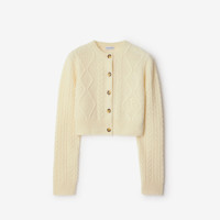 Product Details An Aran cable-knit cardigan made in Italy from a soft wool and alpaca wool blend. The loose open stitch gives it a lightweight feel. The cropped style is cut to a regular fit and embroidered with a B shield, a motif inspired by the Equestrian Knight Design. - Button closure - Embroidered B shield at front - Regular fit. Fits true to size, take your normal size. - Item 80979671 Size & Fit - Length: 43cm/16.9in (size UK S) - Model’s height: 176cm/5ft 9in. Model wears size UK S Fabric & Care - 36% alpaca wool, 35% wool, 29% polyamide - Trims: 35% alpaca wool, 35% wool, 29% polyamide, 1% elastane; 36% polyamide, 32% alpaca wool, 31% wool, 1% elastane - Specialist dry clean - Made in Italy