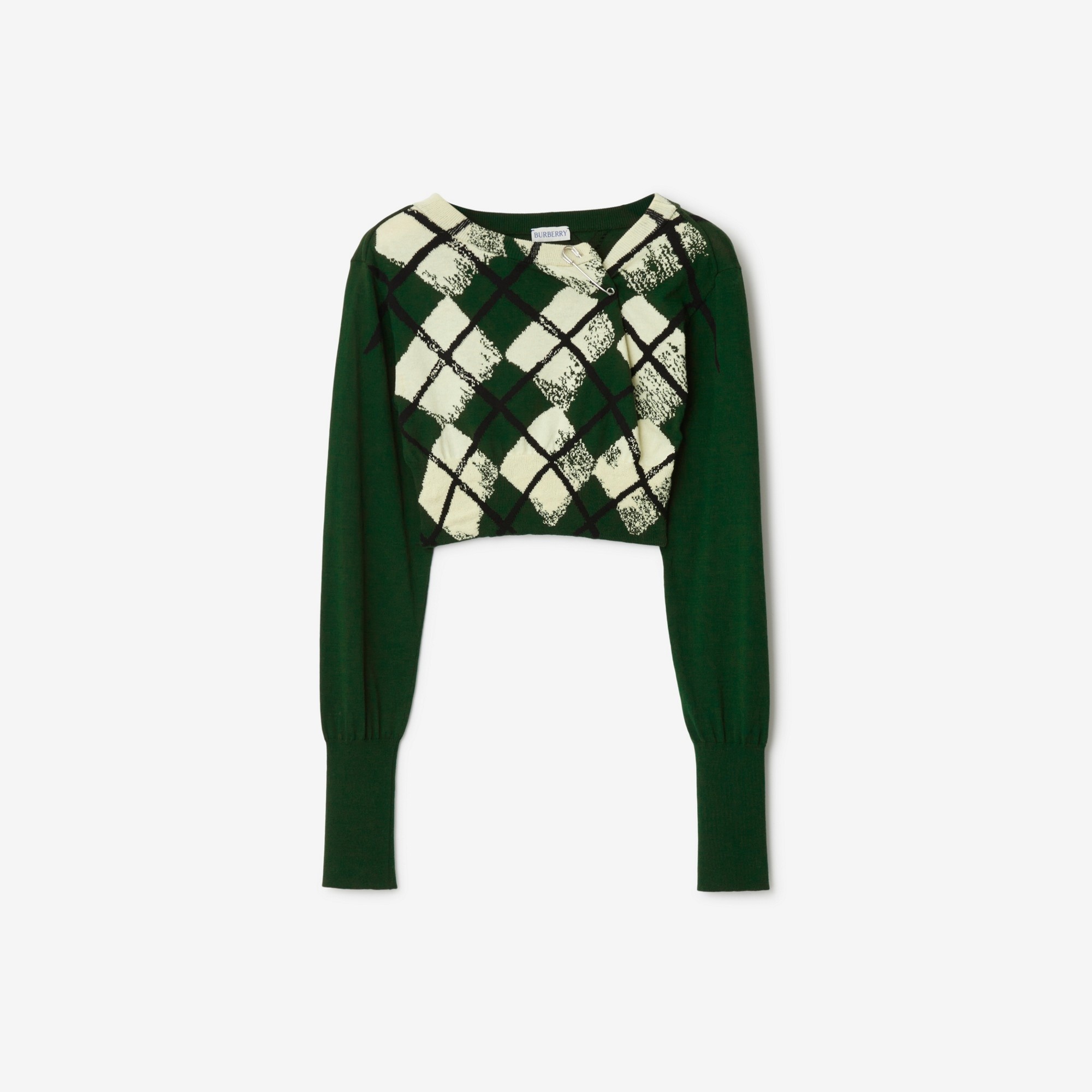 PRODUCT DETAILS A cropped sweater in cotton, intarsia-knitted with an argyle pattern. Cut to a slim fit, the style features a kilt pin at the neckline. - Length: 35.5cm/14in (size UK S) Slim fit 100% cotton Specialist dry clean Made in Italy Item 80811381
