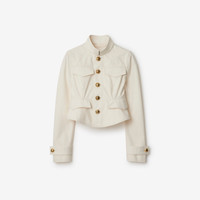 Product Details A tailored jacket made in Italy from cotton twill that is brushed for a soft finish. Inspired by uniforms, the stand-collar style features multiple flap pockets and domed Equestrian Knight Design buttons with an antique finish. The cropped silhouette is unlined and cut to a slim fit with darted seams at the neckline. - Button closure - Hook-and-eye collar closure - Chest and side flap pockets - Button-tab cuffs - Curved hem - Comes with a garment bag - Slim fit: this style is cut to a fitted silhouette. Fits true to size, take your normal size. - Item 81093921 Size & Fit - Length: 42cm/16.5in (size UK 8) - Model’s height: 176cm/5ft 9in. Model wears size UK 8 Fabric & Care - 100% cotton - Pocket lining: 100% cotton - Specialist dry clean - Made in Italy