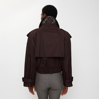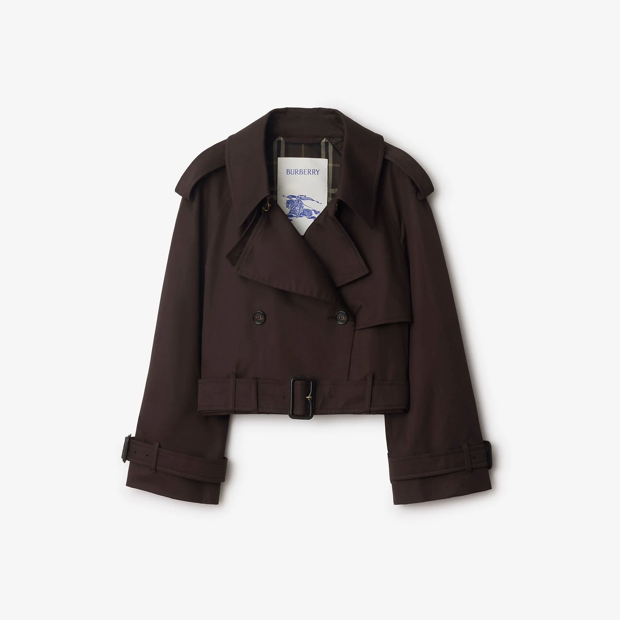 Product Details Regular fit. Fits true to size, take your normal size. Reimagining signature silhouettes, a cropped trench jacket made in Castleford, Yorkshire from water-resistant cotton gabardine. The style is lined with the Burberry Check in seasonal truffle brown. Cut to a regular fit with wide sleeves, a partially elasticated waistband and belt to adjust the silhouette. - Button closure - Hook collar closure - Throat latch - Epaulettes - B buckle belt - Belted cuffs - Burberry Check lining and undercollar - Comes with a garment bag - Item 81150491 Size & Fit - Regular fit. Fits true to size, take your normal size. - Length: 51cm/20.1in (size UK 8) - Model’s height: 180cm/5ft 11in. Model wears size UK 8 Fabric & Care - Outer: 100% cotton - Lining: 100% cotton - Sleeve lining: 100% cupro - Buckles: 100% calf leather - Buttons: buffalo horn - Specialist dry clean - Made in Yorkshire, England