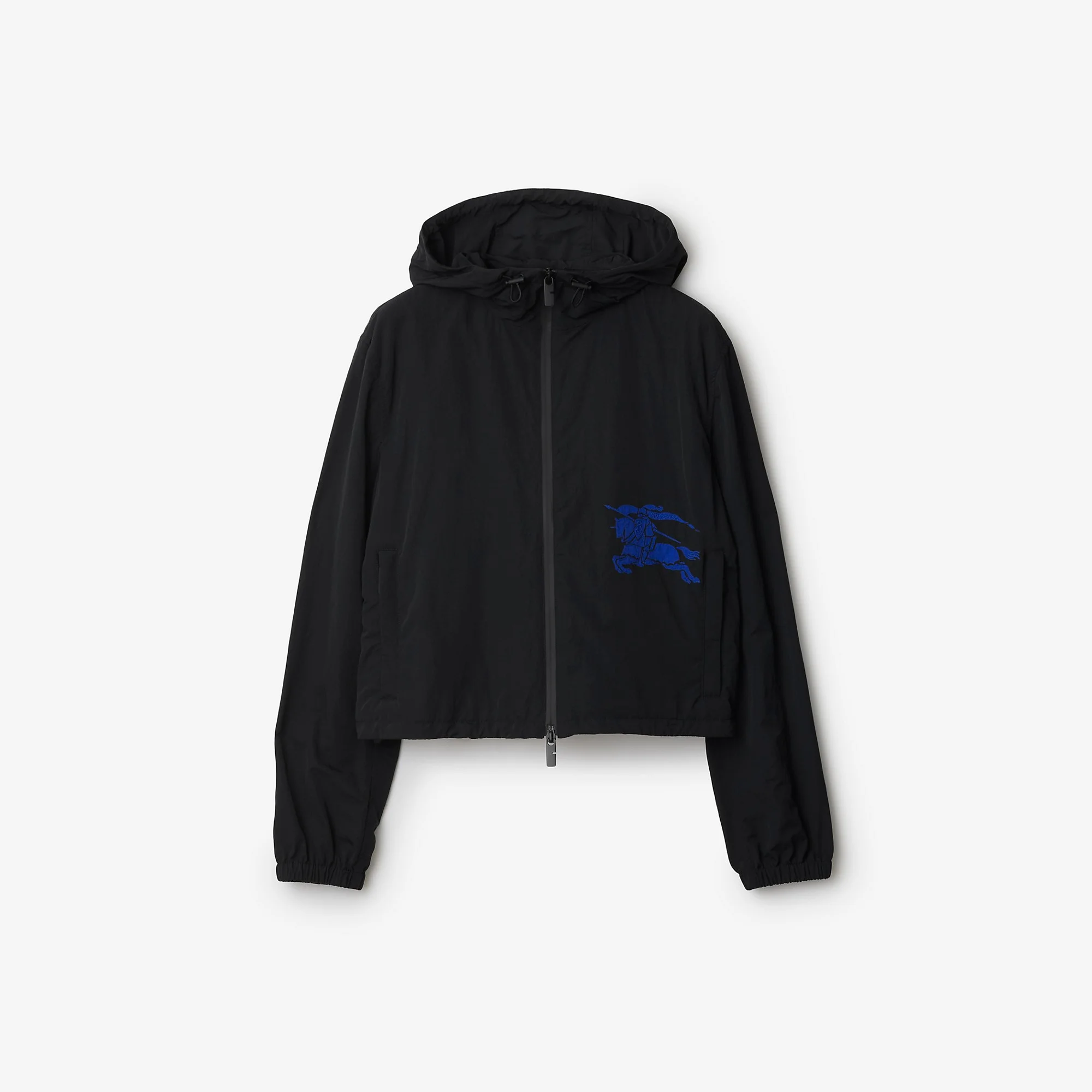 Product Details A hooded jacket in nylon, appliqued with our Equestrian Knight Design. The lightweight style is cut to a relaxed fit with a cropped hem. Part of Burberry Classics, wardrobe foundations with a unique Burberry slant. - Two-way zip closure - Drawcord hood and hem - Side zip pockets - Elasticated cuffs - Appliqued Equestrian Knight Design at front - Relaxed fit: a looser cut than our regular fit. Consider taking a size down. - Item 80850521 Size & Fit - Length: 51cm/20.1in (size UK S) - Model’s height: 180cm/5ft 11in. Model wears size UK S Fabric & Care - 100% polyamide* - *The main material of this product is made with at least 50% recycled content - Specialist dry clean - Imported
