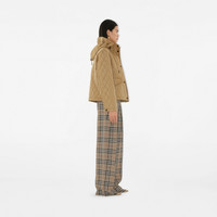 Product Details A quilted jacket made from lightweight nylon, cut to a regular fit with a drawcord hood. The cropped style is lined with Burberry Check cotton twill in our signature sand colourway. - Two-way zip and press-stud closure - Drawcord hood - Side press-stud flap patch pockets - Press-stud cuffs - Burberry Check lining - Equestrian Knight Design tag at side - Comes with a garment bag - Regular fit. Fits true to size, take your normal size. - Item 81131161 Size & Fit - Length: 56cm/22.1in (size UK S) - Model's height: 175cm/5ft 9in. Model wears size UK S Fabric & Care - Outer: 100% polyamide - Trim: 100% cotton - Lining: 100% cotton - Filling: 100% polyester fibres - Pockets: 100% cotton - Specialist dry clean - Imported