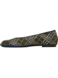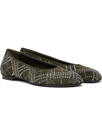 Suede ballerina flats in khaki. · Check pattern with crystal-cut appliques throughout · Buffed leather lining · Leather heel with rubber injection · Leather sole Supplier color: Loch Upper: leather. Sole: leather, rubber. Made in Italy 251376F118002