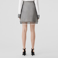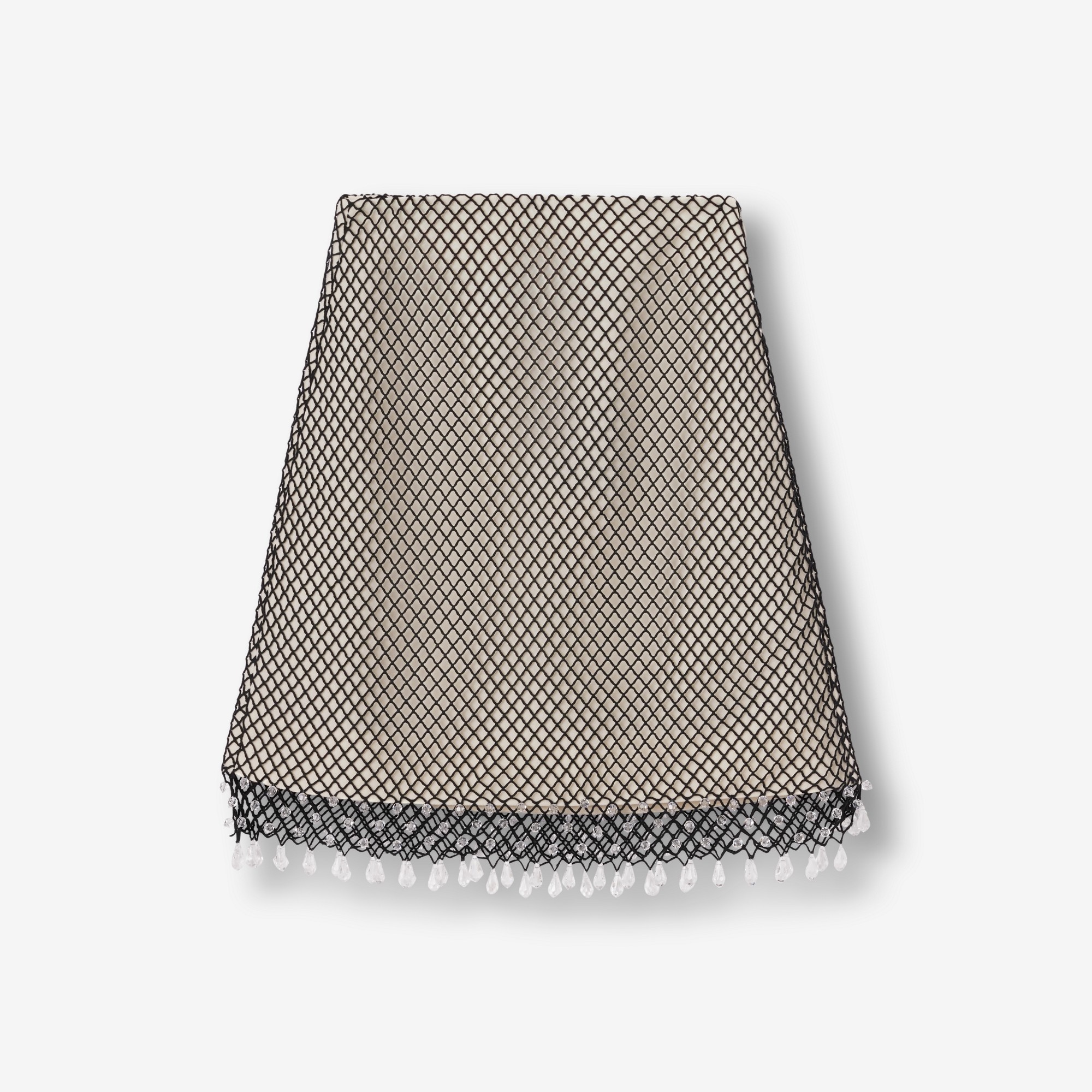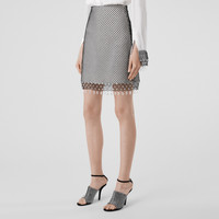 PRODUCT DETAILS A flared silhouette in a wool and silk blend, styled with a fishnet overlay adorned with light-catching crystals. - Skirt length: 43.5cm/17.1in. This is based on a size UK 6 as proportions change slightly according to size. Model’s height: 180.5cm/5ft 11.5in. Model wears size UK 6. 92% wool, 8% silk Panels: 96% cotton, 4% elastane Concealed back zip and button closure Spot clean Imported Item 80632691