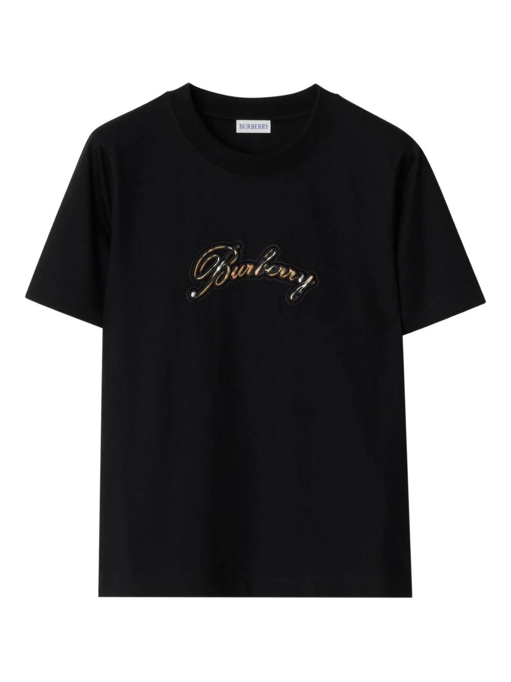 cursive logo cotton t-shirt Highlights - Black - Check detail - Chain-stitch embroidery - Rib-knit neckline - Lettering at chest Imported Composition Cotton 100% Washing instructions Read Manufacturer Guidelines