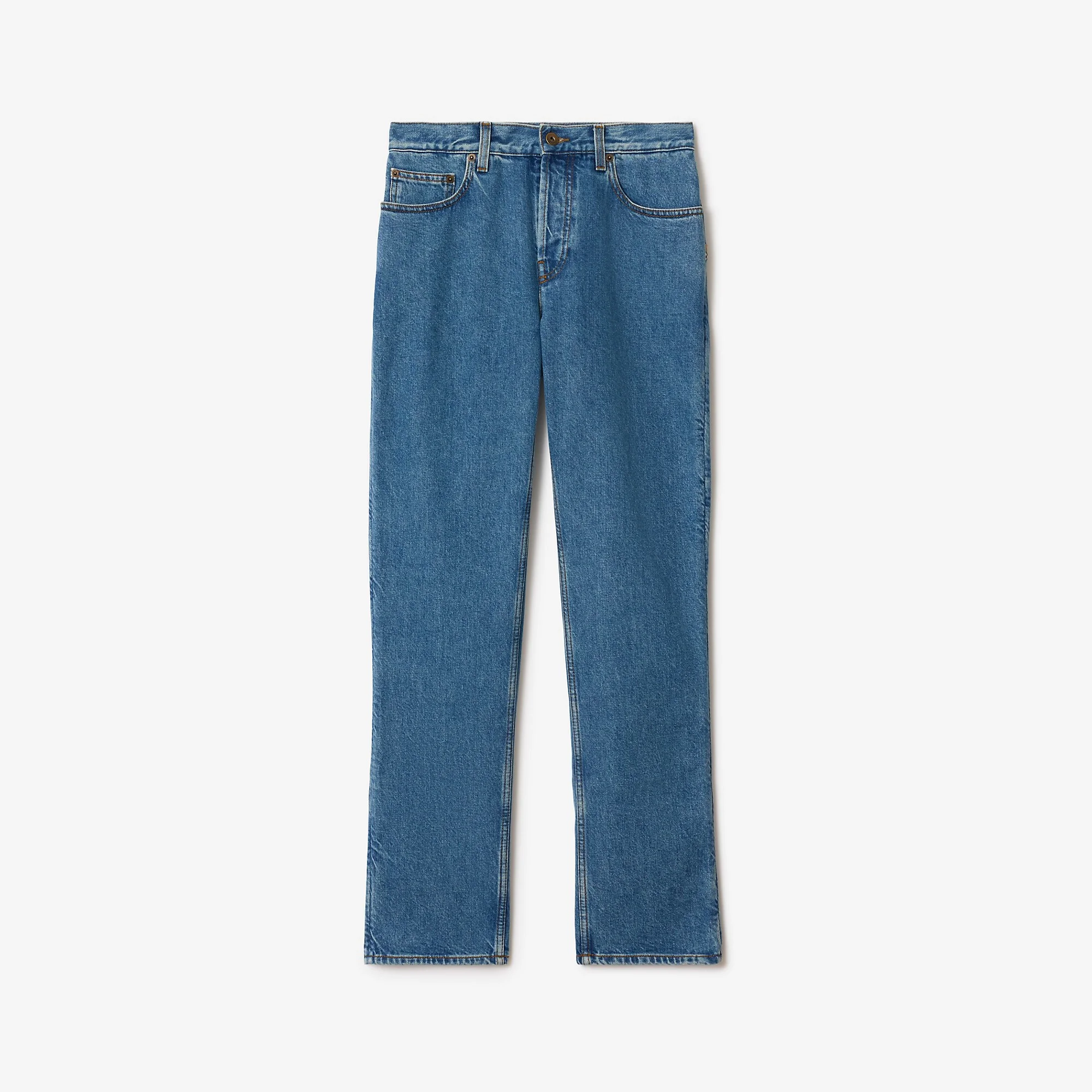 Product Details Jeans made in Italy from stretch denim in a mid-blue wash. The five-pocket style is cut to a straight fit and features a suede patch embossed with the Equestrian Knight Design. - Button closure - Suede patch with embossed Equestrian Knight Design at back - Burberry Check tab at side - Straight: comfortable fit at hip, straight leg. - Machine wash inside out - Item 81107391 Size & Fit - Inside leg length: 78.5cm/30.9in - Model's height: 180cm/5ft 11in. Model wears size UK 26 Fabric & Care - 98% cotton, 2% elastane* - Trim: 50% calf leather, 50% lamb suede - *The main material of this product contains at least 70% cotton, all of which is organically grown - Made in Italy