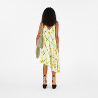 PRODUCT DETAILS A satin dress made in Italy, printed with a dandelion pattern. The design features slim shoulder straps and an asymmetric hem. - Length: 78.5cm/30.9in (size UK 6) - Model’s height: 177cm/5ft 10in. Model wears size UK 6 Outer: 100% polyester Lining: 100% silk Specialist dry clean Made in Italy Item 80834511