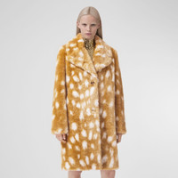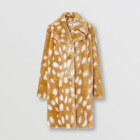 PRODUCT DETAILS A single-breasted silhouette in sumptuous faux fur, finished with a lambskin undercollar. The design is cut to a relaxed fit and highlighted with a deer print – in ode to the Burberry animal kingdom. Relaxed fit Coat length: 100cm/39.4in. This is based on a size UK 6 as proportions change slightly according to size. Model’s height: 178cm/5ft 10in. Model wears size UK 6. Outer: 85% modacrylic, 15% polyester Trim: 100% lambskin Lining: 100% cupro Filling: 100% polyester Single-breasted closure Side slip pockets Specialist fur clean Made in Italy 80492711