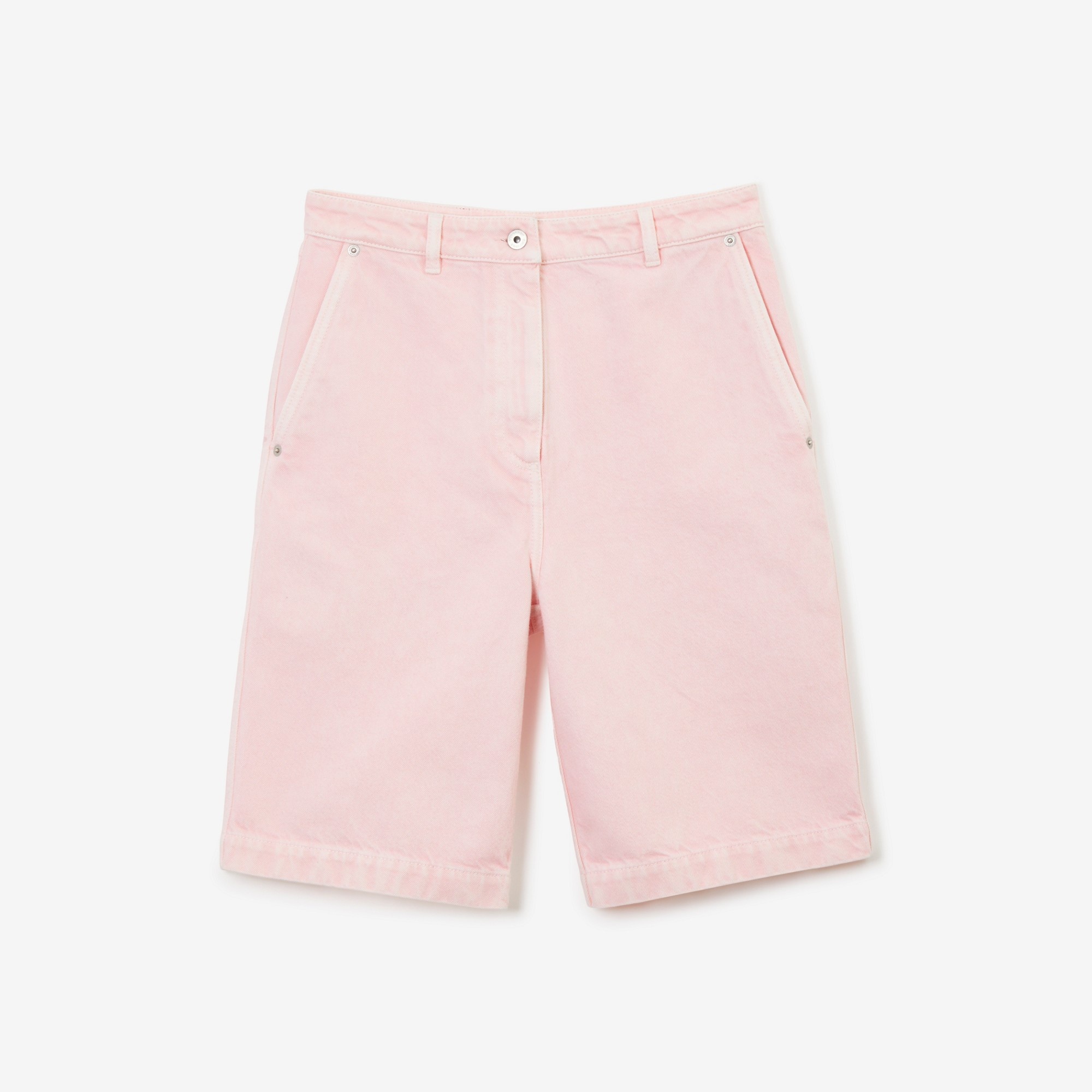 PRODUCT DETAILS A knee-length style embroidered with a tonal Equestrian Knight Design. - Shorts inside leg length: 26.5cm/10.4in. This is based on a size UK 6. 100% cotton Trim: 100% calf leather Heavyweight denim Button and zip fly closure Side slip pockets, back patch pockets Leather patch with embossed Burberry lettering at back Machine wash inside out Made in Italy Item 80733921