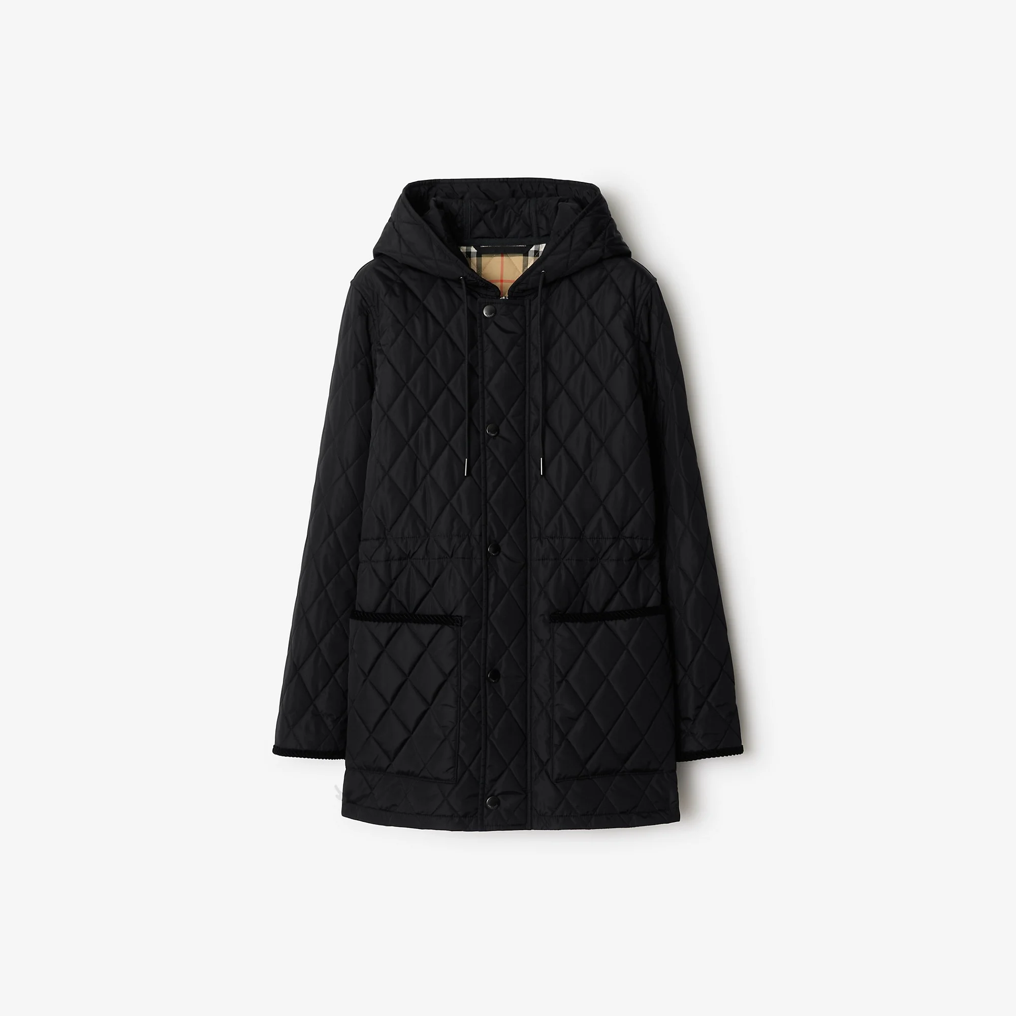 Product Details A quilted parka made from lightweight nylon with a contrasting lining in Burberry Check cotton twill. Cut to a regular fit, the hooded style features tonal corduroy trims and a drawcord to cinch the waist. - Zip and press-stud closure - Drawcord hood and waist - Side patch pockets - Burberry Check lining - Equestrian Knight Design tag at side - Comes with a garment bag - Regular fit. Fits true to size, take your normal size. - Item 81105311 Size & Fit - Length: 75cm/29.5in (size UK S) Fabric & Care - Outer: 100% polyamide - Trim: 100% cotton - Lining: 100% cotton - Filling: 100% polyester fibres - Specialist dry clean - Imported