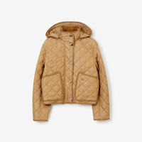 PRODUCT DETAILS A cropped jacket in quilted nylon, lined with the Burberry Check. The design features a detachable hood and an embroidered Equestrian Knight Design. - Length: 53cm/20.9in (size UK S) - Model’s height: 177cm/5ft 10in. Model wears size UK S. Regular fit Outer: 100% polyamide* Trim: 100% cotton Lining: 100% polyester Filling: 100% polyester Specialist dry clean Imported *The main material of this product is made with at least 70% recycled content. Item 80709691