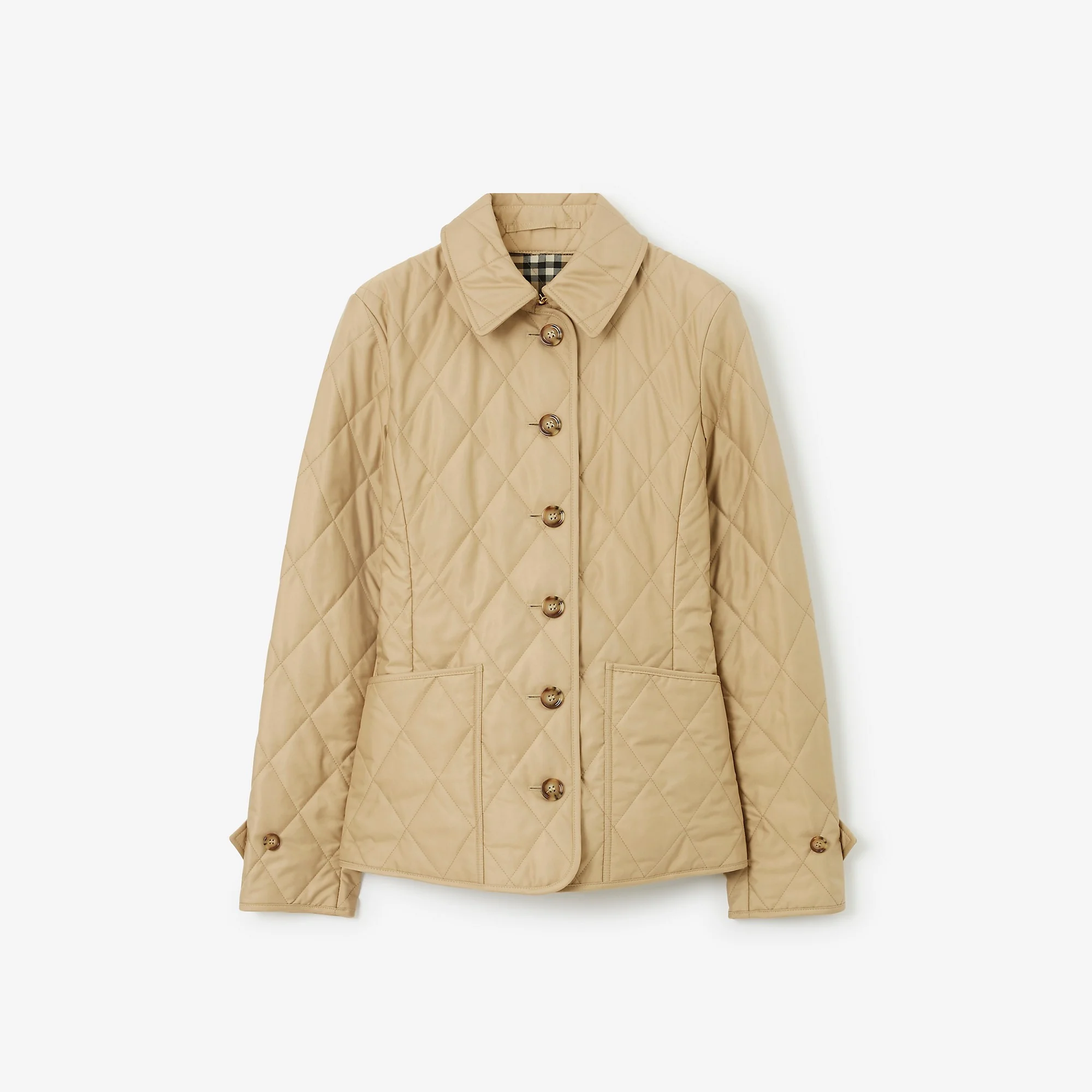 Product Details A quilted jacket with 37.5® thermoregulation technology for insulation and breathability. The lightweight design is cut to a slim fit and lined in Burberry Check. - Single-breasted button closure - Hook collar closure - Throat latch - Side patch pockets - Button-tab cuffs - Burberry Check lining - Slim fit: this style is cut to a fitted silhouette. Fits true to size, take your normal size. - Item 80498681 Size & Fit - Length: 65cm/25.6in (size UK S) - Model's height: 177cm/5ft 10in. Model wears size UK S Fabric & Care - Outer: 100% polyester* - Trim: 100% leather - Lining: 70% cotton, 30% polyester - Filling: 100% polyester - *The main material of this product is made with at least 70% recycled content - Specialist dry clean - Imported