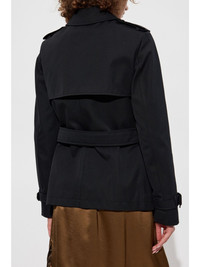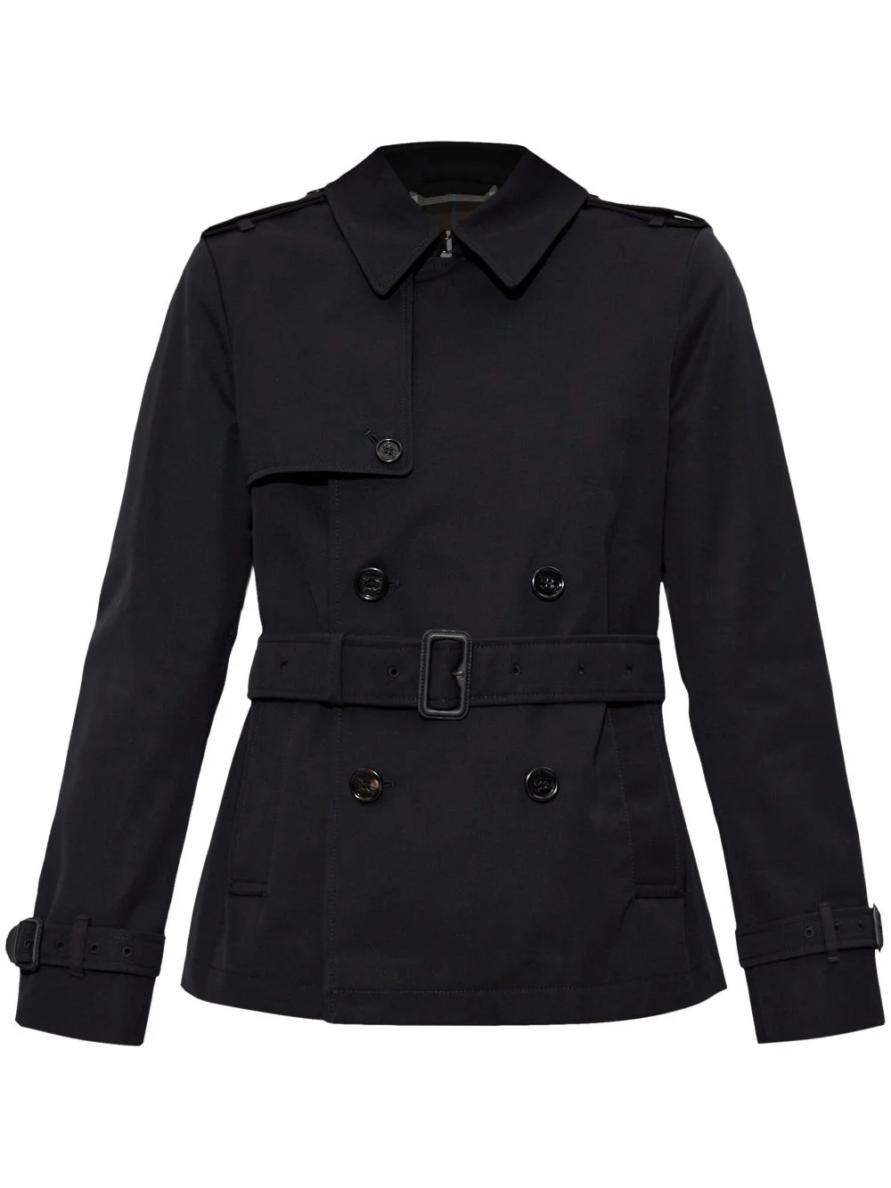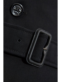 double-breasted trench jacket Highlights - Black - Waterproof - Double-breasted button fastening - Classic collar - Epaulettes - Belted waist - Long sleeves - Belted cuffs - Two side welt pockets - Straight hem Made in United Kingdom Composition Polyester 100%