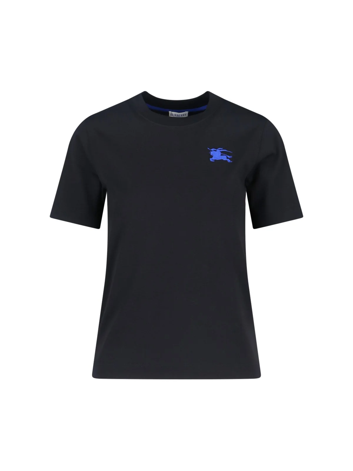 BURBERRY 'EDK' BLACK COTTON CREW NECK T-SHIRT WITH SHORT SLEEVES, CONTRAST 'EDK' LOGO EMBROIDERY AT THE FRONT, STRAIGHT HEM. PRODUCT INFO PRODUCT CODE 8111946A1189 COMPOSITION: 100% COTTON SIZE AND FIT: REGULAR FIT MADE IN: PORTUGAL