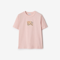 Product Details A T-shirt in lightweight cotton jersey, cut to a regular fit. The style is embroidered with our logo and Equestrian Knight Design on a Burberry Check backdrop in signature sand beige. - Rib-knit neckline - Embroidered Equestrian Knight Design at chest - Regular fit. Fits true to size, take your normal size. - Machine wash - Item 81161631 Size & Fit - Length: 61cm/24in (size UK S) - Model’s height: 180cm/5ft 11in. Model wears size UK S Fabric & Care - 100% cotton - Trims: 97% cotton, 3% elastane; 100% cotton - Made in Portugal