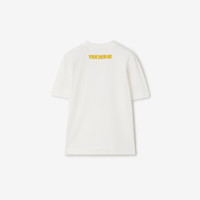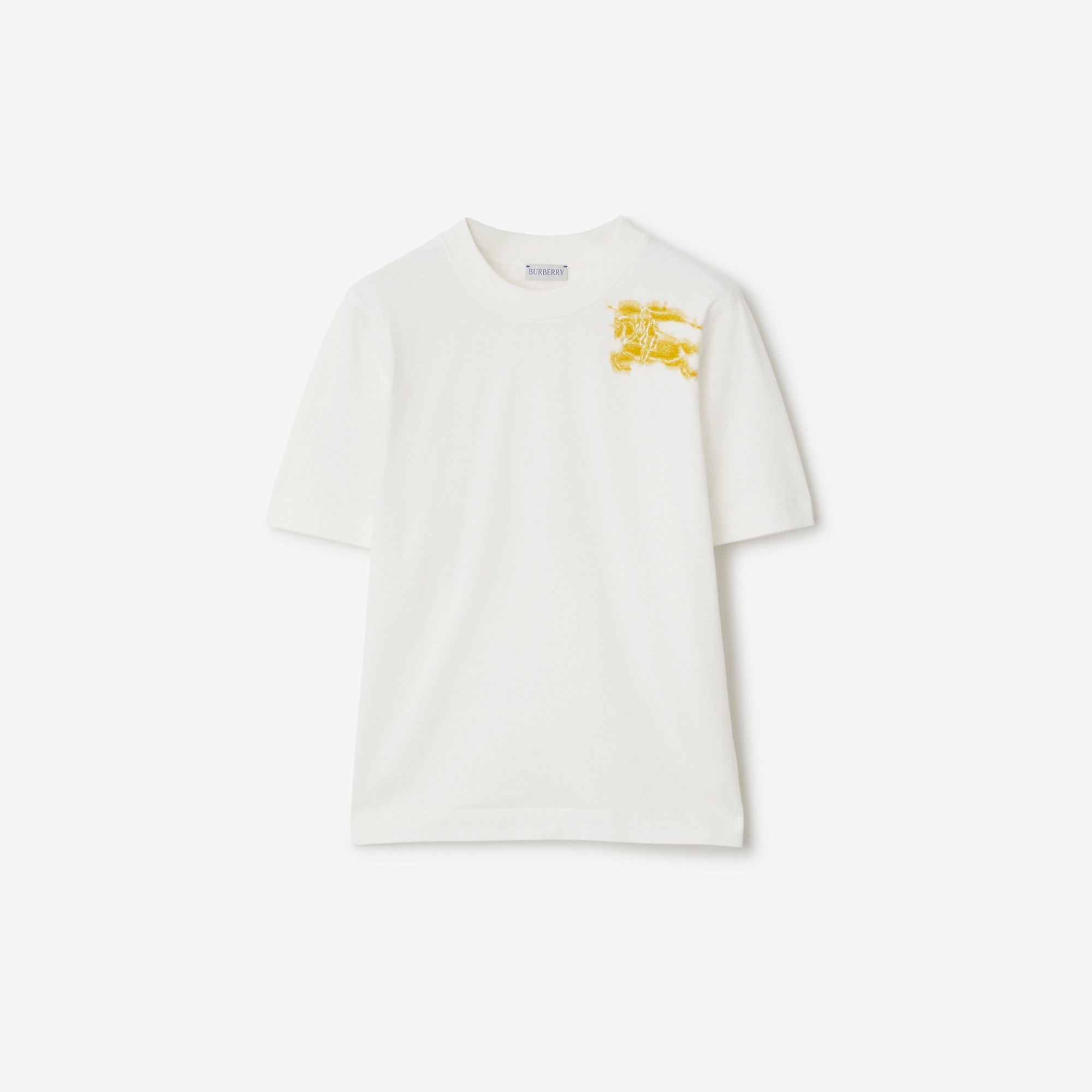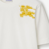 Product Details A T-shirt in cotton jersey, screen-printed with our Equestrian Knight Design and logo in the style of graffiti art. - Rib-knit neckline - Printed Equestrian Knight Design and Burberry lettering - Regular fit. Fits true to size, take your normal size. - Machine wash - Item 80906431 Size & Fit - Length: 61cm/24in (size UK S) - Model’s height: 180cm/5ft 11in. Model wears size UK S Fabric & Care - 100% cotton - Trim: 97% cotton, 3% elastane - Made in Portugal