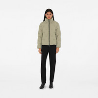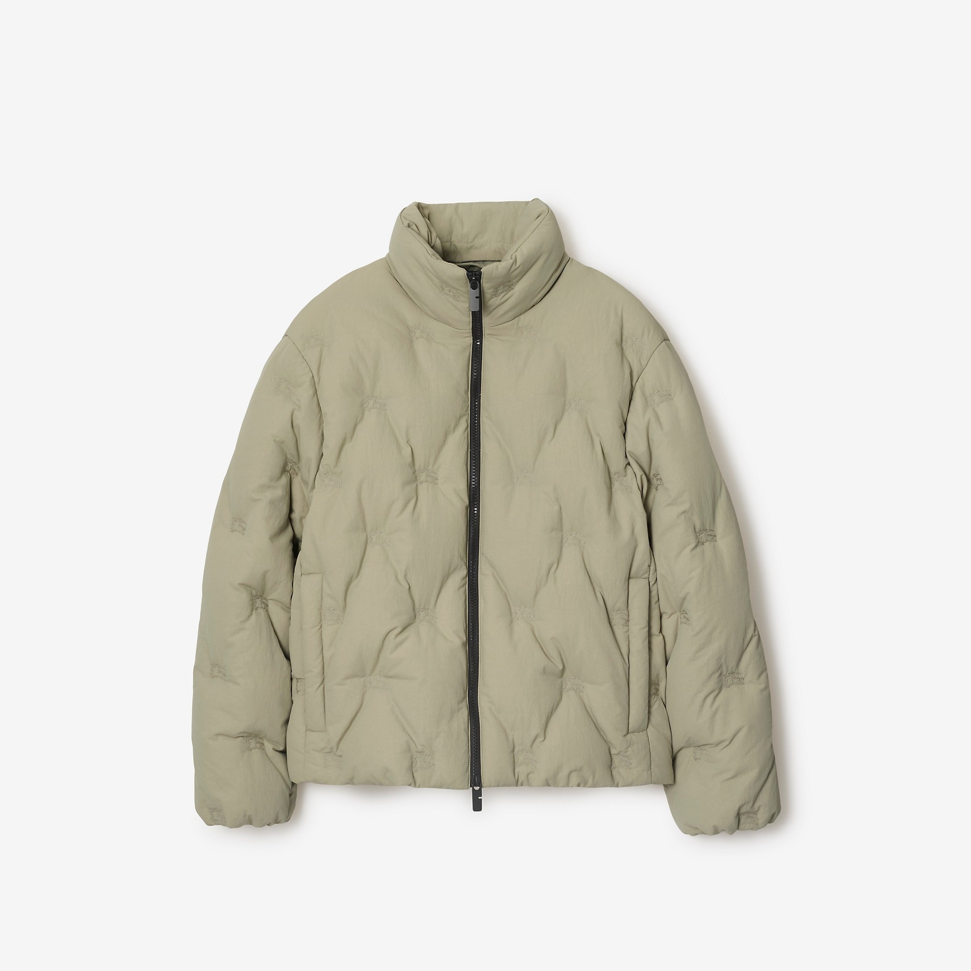 Product Details A puffer jacket in nylon, embroidered with our Equestrian Knight Design and filled with goose down and feathers. The style is cut to a relaxed fit and features a packaway hood concealed within the funnel neck. Part of Burberry Classics, wardrobe foundations with a unique Burberry slant. - Two-way zip closure - Drawcord hood and hem - Side zip pockets - Elasticated cuffs - Embroidered Equestrian Knight Design - This item will be packaged in a recycled cotton tote unless the gift packaging option is selected at checkout. - Relaxed fit: a looser cut than our regular fit. Consider taking a size down. - Machine wash - Item 80941761 Size & Fit - Length: 60cm/23.6in (size UK S) - Model’s height: 176cm/5ft 9in. Model wears size UK S Fabric & Care - Outer: 100% polyamide - Linings: 100% polyamide - Filling: 90% goose down, 10% goose feathers - Wadding: 100% polyester fibres - Imported
