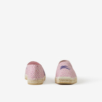 PRODUCT DETAILS Square-toe espadrilles printed with the Thomas Burberry Monogram and Equestrian Knight Design. Upper: 100% cotton Lining: 80% sheep leather, 20% goat leather Sole: 100% rubber Slip-on style Square toe Made in Spain Item 80719891