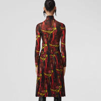 PRODUCT DETAILS A funnel-neck dress cut from sheer jersey, printed with our Equestrian Knight Design. The long-sleeved silhouette features a figure-sculpting top contrasted by pleated panels at the skirt. The design made its debut in Riccardo Tisci’s Autumn/Winter 2022 womenswear collection, a playful twist on tradition that builds on our British heritage and house codes. Model's height: 180cm/5ft 11in. Model wears size UK 6. 80% viscose, 20% polyamide Trim: 88% polyester, 12% elastane Concealed back hook-and-eye and zip closure Specialist dry clean Made in Italy 80621181