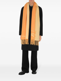EKD reversible scarf Highlights - Light orange/peach orange - Cashmere - Knitted construction - Signature equestrian knight motif - Reversible - Intarsia-knit logo - Fringed edge Made in Italy Composition Cashmere 100% SIZE & FIT Measurement LENGTH 82.67 in(210 cm) WIDTH 17.71 in(45 cm)