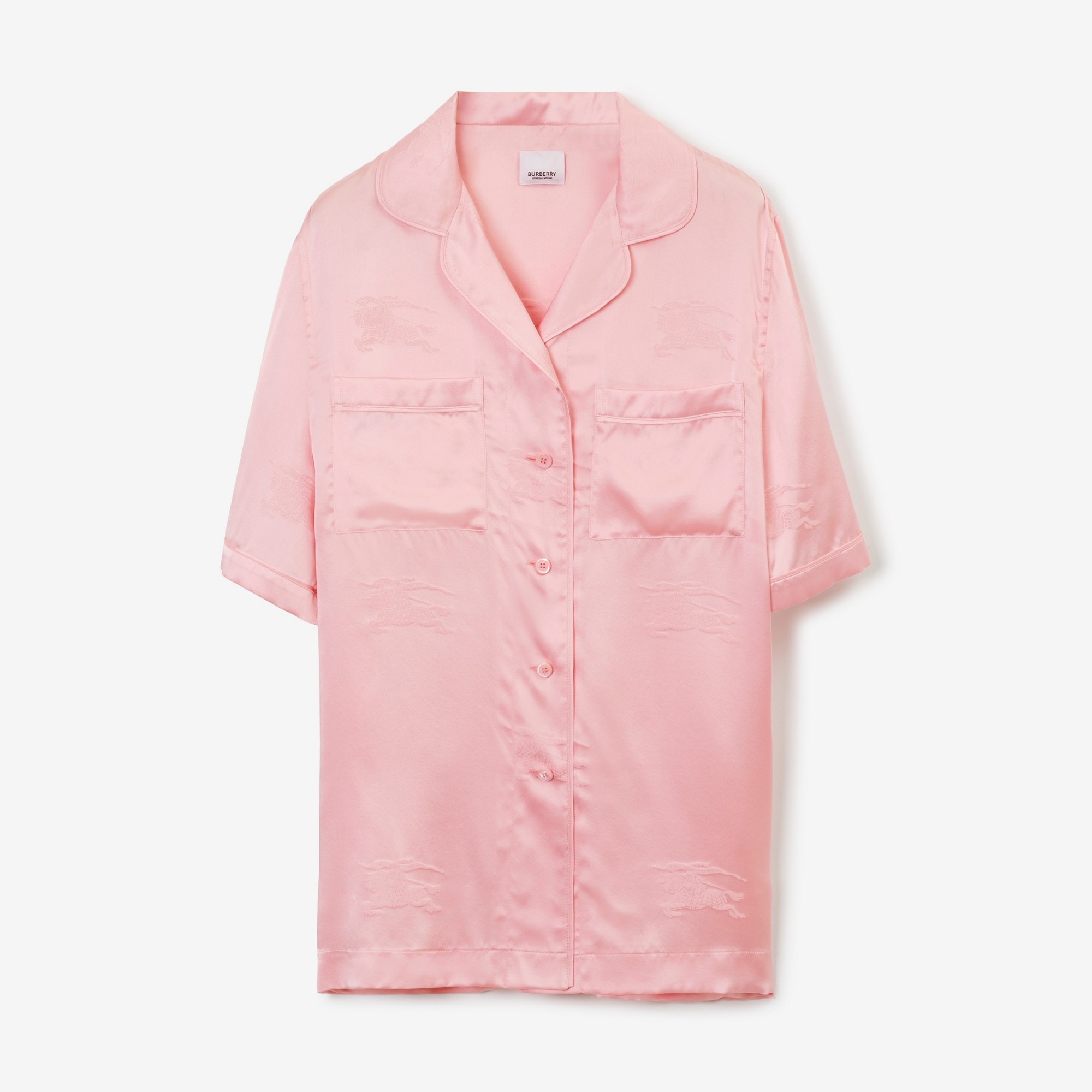 PRODUCT DETAILS Jacquard-woven with a tonal Equestrian Knight Design – an archive emblem introduced in 1901. - Shirt length: 70cm/27.6in. This is based on a size UK 6. - Model’s height: 177cm/5ft 10in. Model wears size UK 6. Relaxed fit. This style is cut to a loose silhouette. 100% silk Buttons: mother-of-pearl Short sleeves Revere collar Chest patch pockets Specialist dry clean Made in Italy Item 80713501