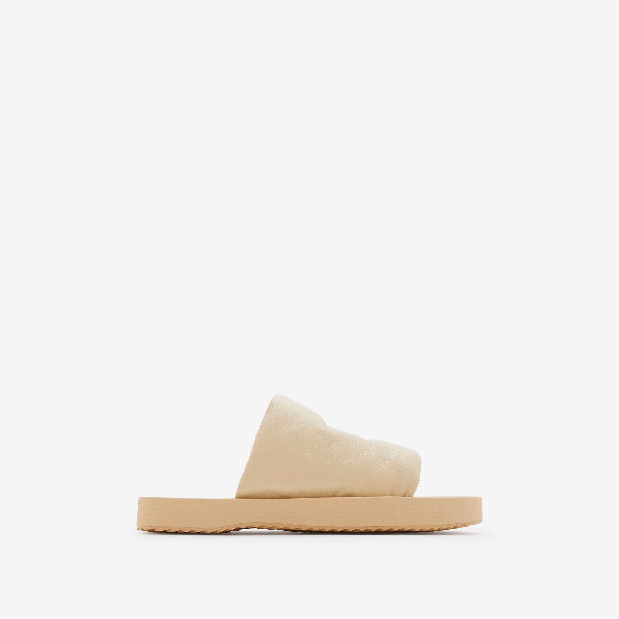 PRODUCT DETAILS A pair of Italian-made slides in nappa leather, debossed with the Equestrian Knight Design. Upper: 100% lambskin Lining: 60% lambskin, 40% polyurethane Sole: 100% thermoplastic polyurethane Made in Italy Item 80817201