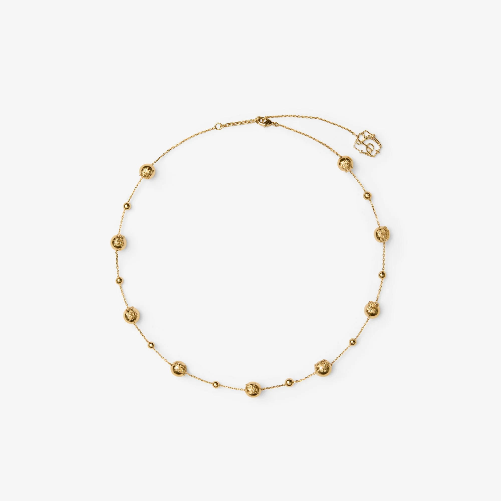 Product Details An adjustable chain-link necklace made in Italy from brass with gold plating. The slender style features our B charm and spheres engraved with our Equestrian Knight Design and Burberry lettering. Clasp closure B-shaped charm Comes with a dust bag - Item 81009891 Size & Fit - Min. length: 42cm/16.5in. Max. length: 44cm/17.3in Fabric & Care - 100% brass with gold plating - Made in Italy