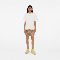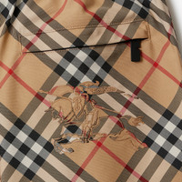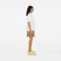 Product Details Drawcord shorts in a twill fabric woven with the Burberry Check. The style is cut to a regular fit and appliqued with the Equestrian Knight Design. Part of Burberry Classics, wardrobe foundations with a unique Burberry slant. - Elasticated drawcord waist - Side zip pockets, back zip pocket - Appliqued Equestrian Knight Design at back pocket - Regular fit. Fits true to size, take your normal size. - Item 80882901 Size & Fit - Inside leg length: 7cm/2.8in (size UK 6) - Model’s height: 180cm/5ft 11in. Model wears size UK 6 Fabric & Care - 100% polyester* - Panels: 100% polyamide - *The main material of this product is made with at least 50% recycled content - Specialist dry clean - Imported