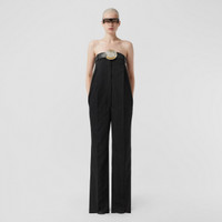 PRODUCT DETAILS A strapless jumpsuit elevated in Italian-woven wool, tailored with sharp pleats. The clean-lined silhouette is patterned with our Equestrian Knight Design in tonal embroidery. The piece made its debut in Riccardo Tisci’s Autumn/Winter 2022 womenswear collection. Please note that the belt pictured is sold separately. Jumpsuit inside leg length: 74cm/29.1in. This is based on a size UK 6 as proportions change slightly according to size. Model’s height: 180cm/5ft 11in. Model wears size UK S. Outer: 100% wool Lining: 100% cupro Buttons: mother-of-pearl Front zip closure Side slip pockets Interior waist adjustor Detachable shoulder straps Specialist dry clean Made in Italy 80620321